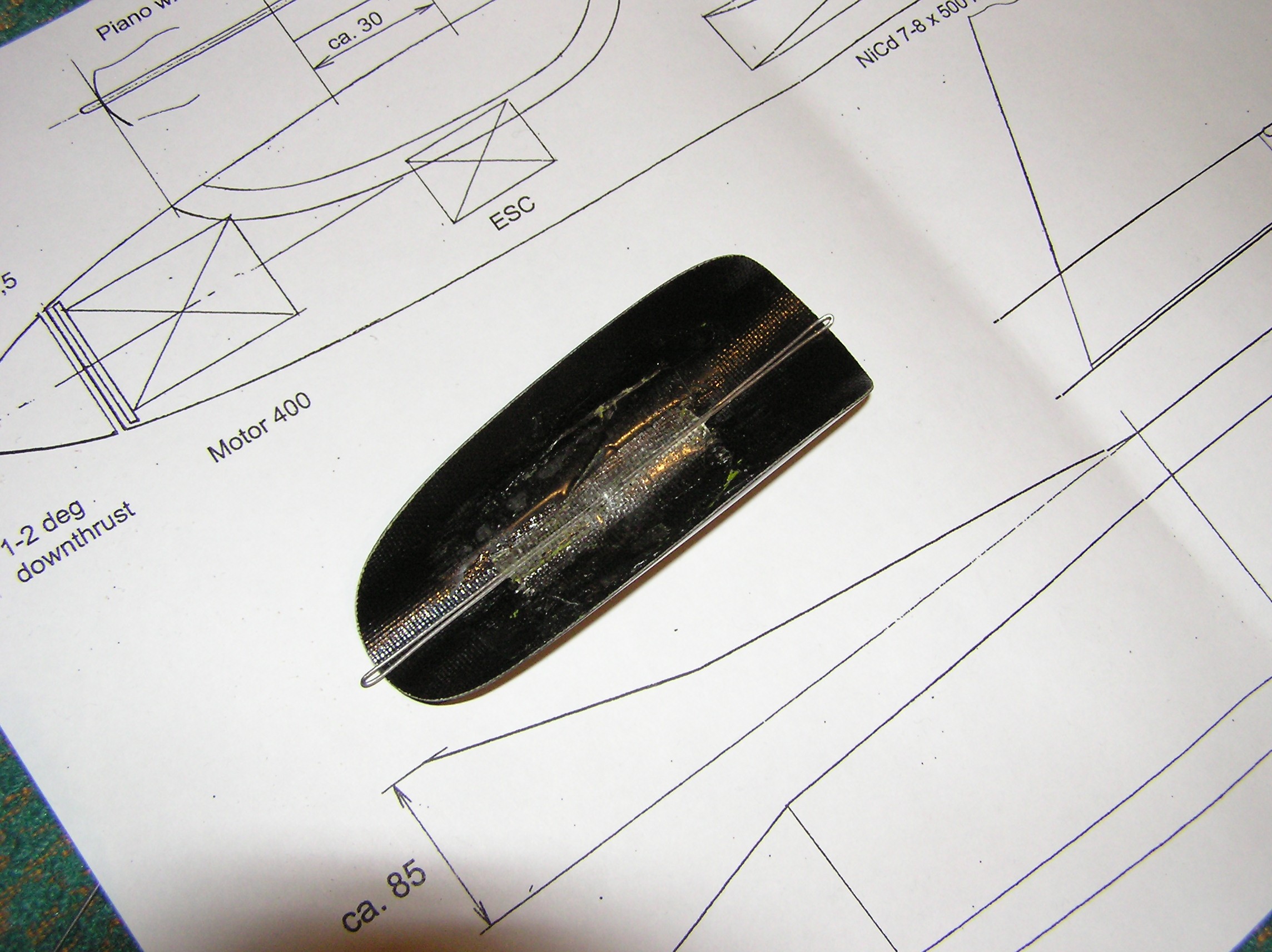 | konstrukce: celobalzová křídla a ocasní plochy potaženy nažehlovací folíi. Konstruktér a stavitel Ivan Hořejší, model byl určen pro soutěž v kategorii RCEJ, RCEK. |