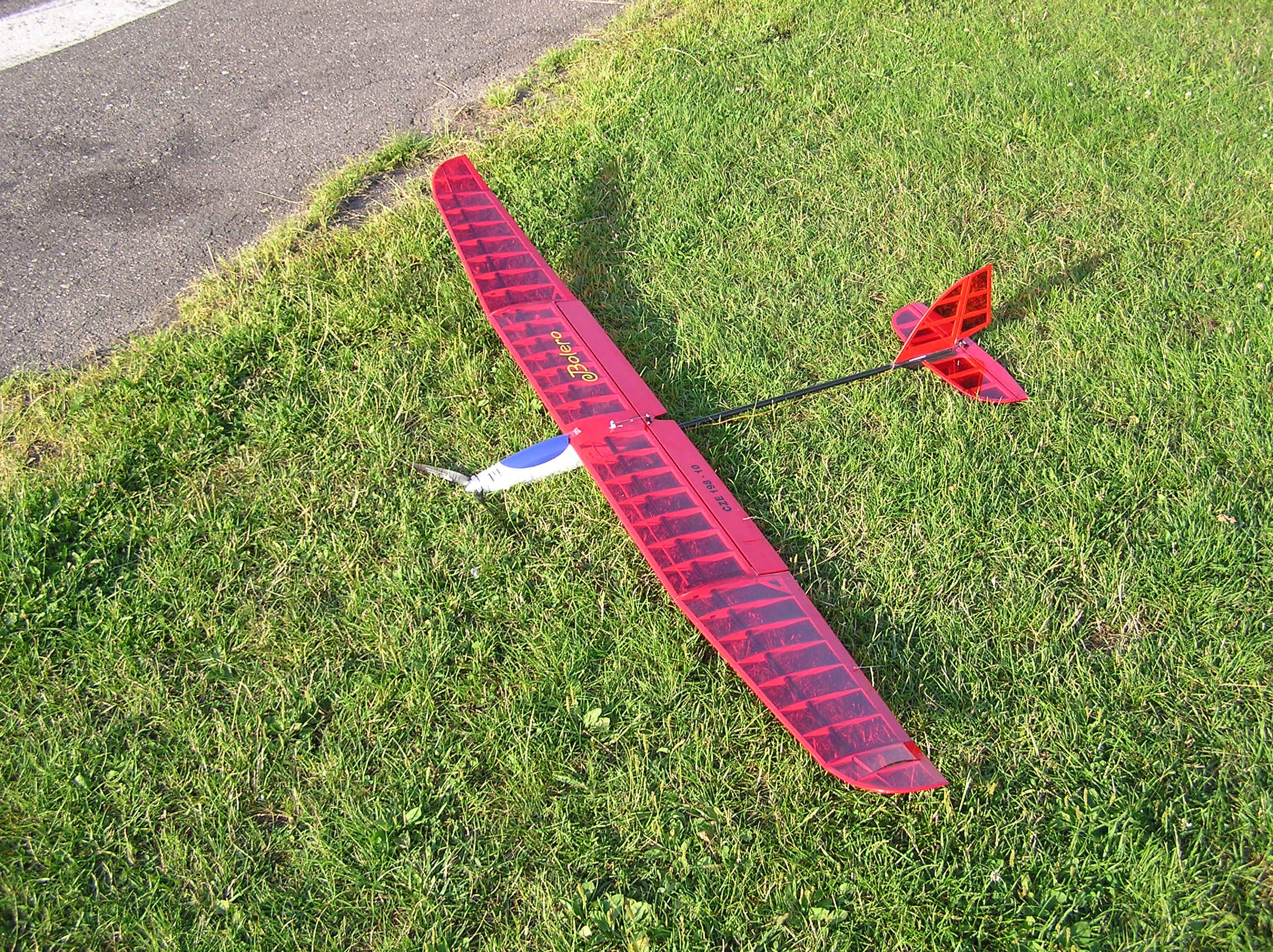 | konstrukce: celobalzová křídla a ocasní plochy potaženy nažehlovací folíi. Konstruktér Luboš Rezler |